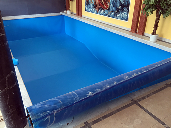 2. Po odtránení pôvodnej fólie sa bazén stavebne vyspravil.